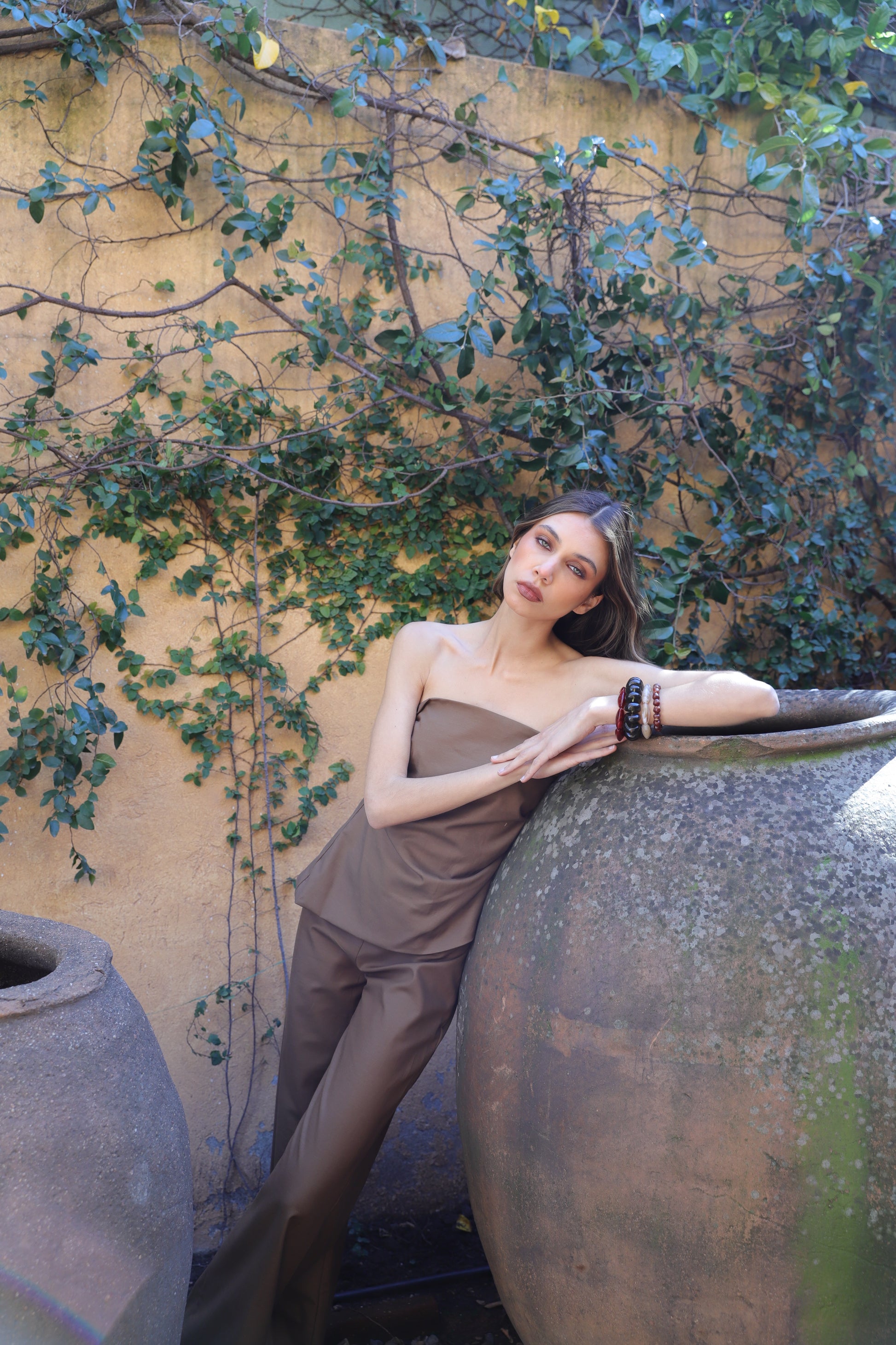 Para un total look armónico y elegante, combínala con nuestro pantalón Regina Café.