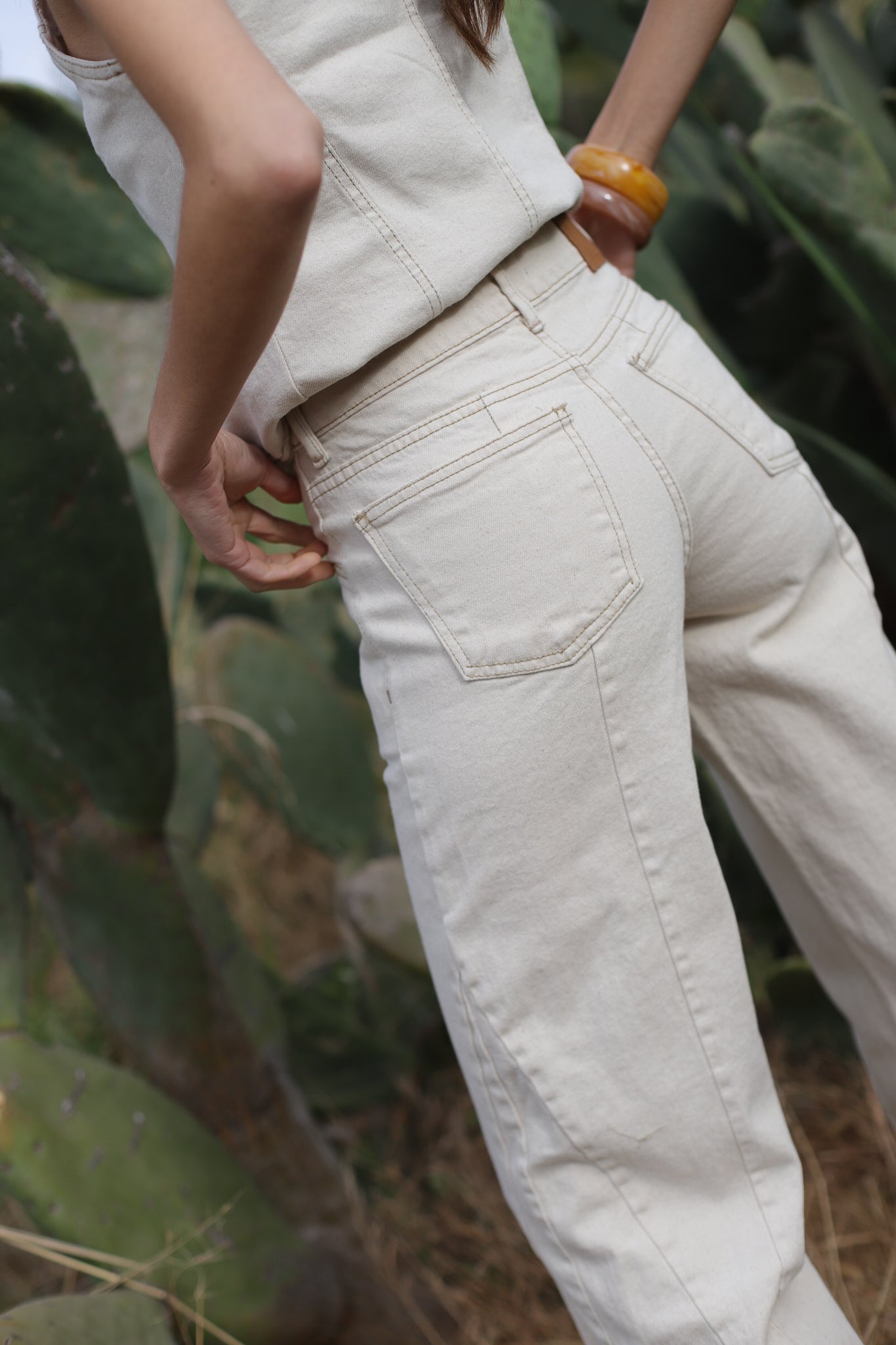 Este jean en tono crudo rústico combina diseño contemporáneo con una estética natural y auténtica. Hecho en Chile, está confeccionado en un denim firme y de textura real, que aporta estructura sin perder comodidad. Las costuras en tono café recorren la prenda resaltando su construcción y creando un contraste sutil que define sus líneas.