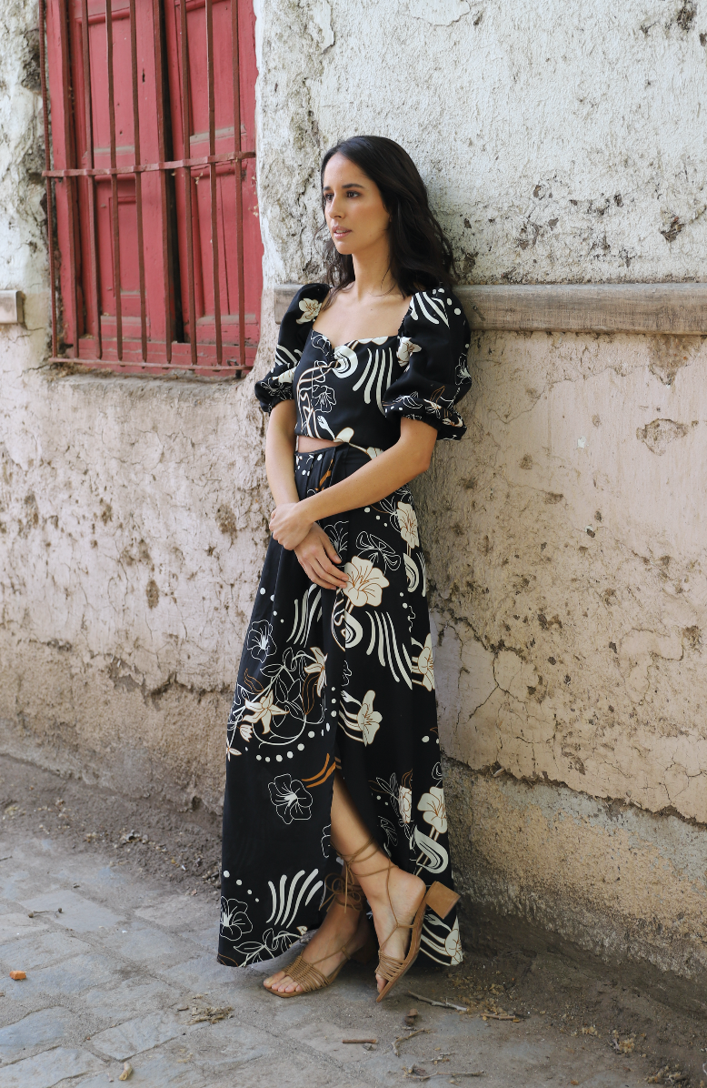 Pollera envolvente en 100% tencel con pliegues en costado. Hecha a mano en Chile.