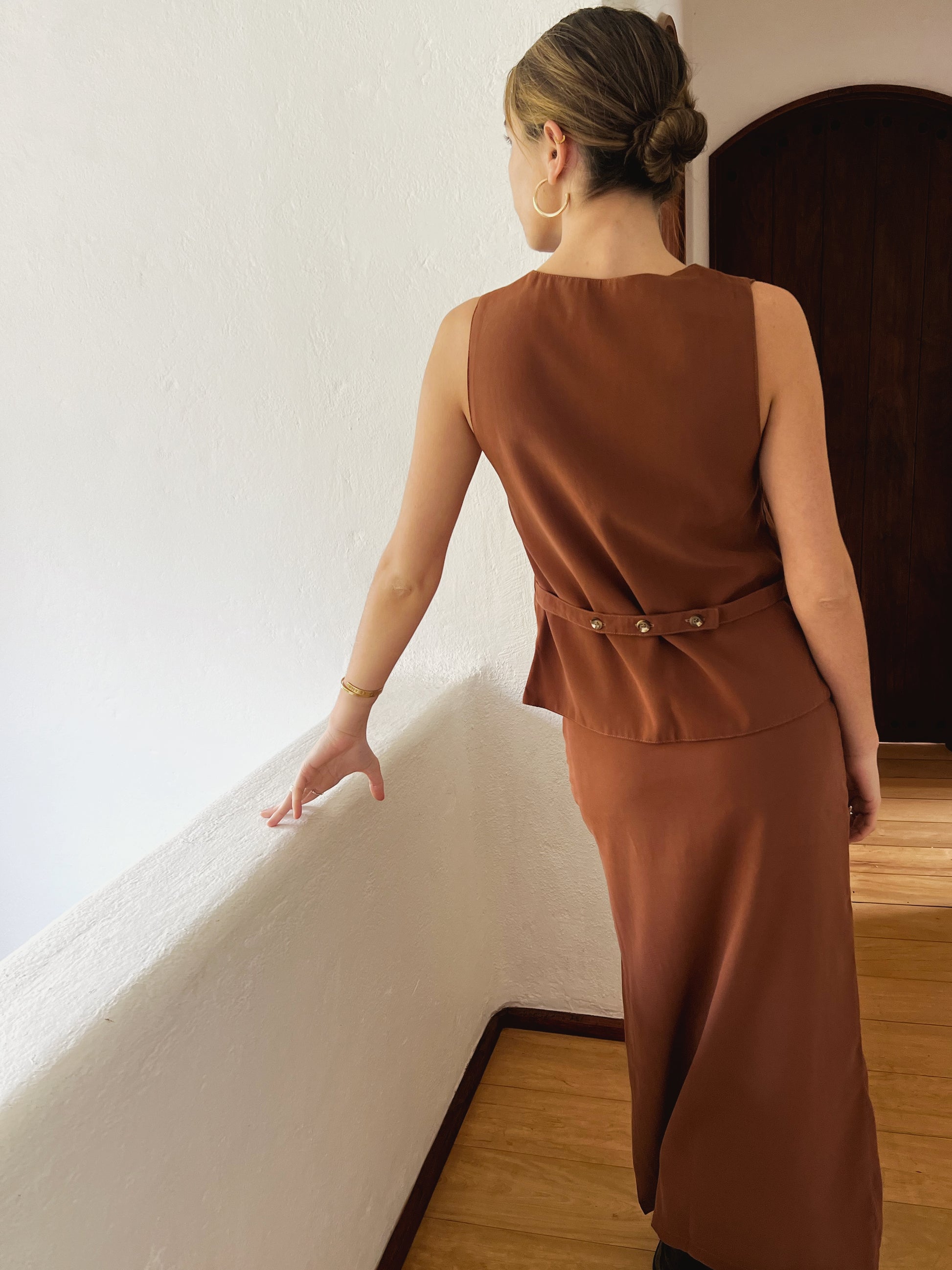Pollera tubo midi con tajo frontal en tela 100% Cupro.