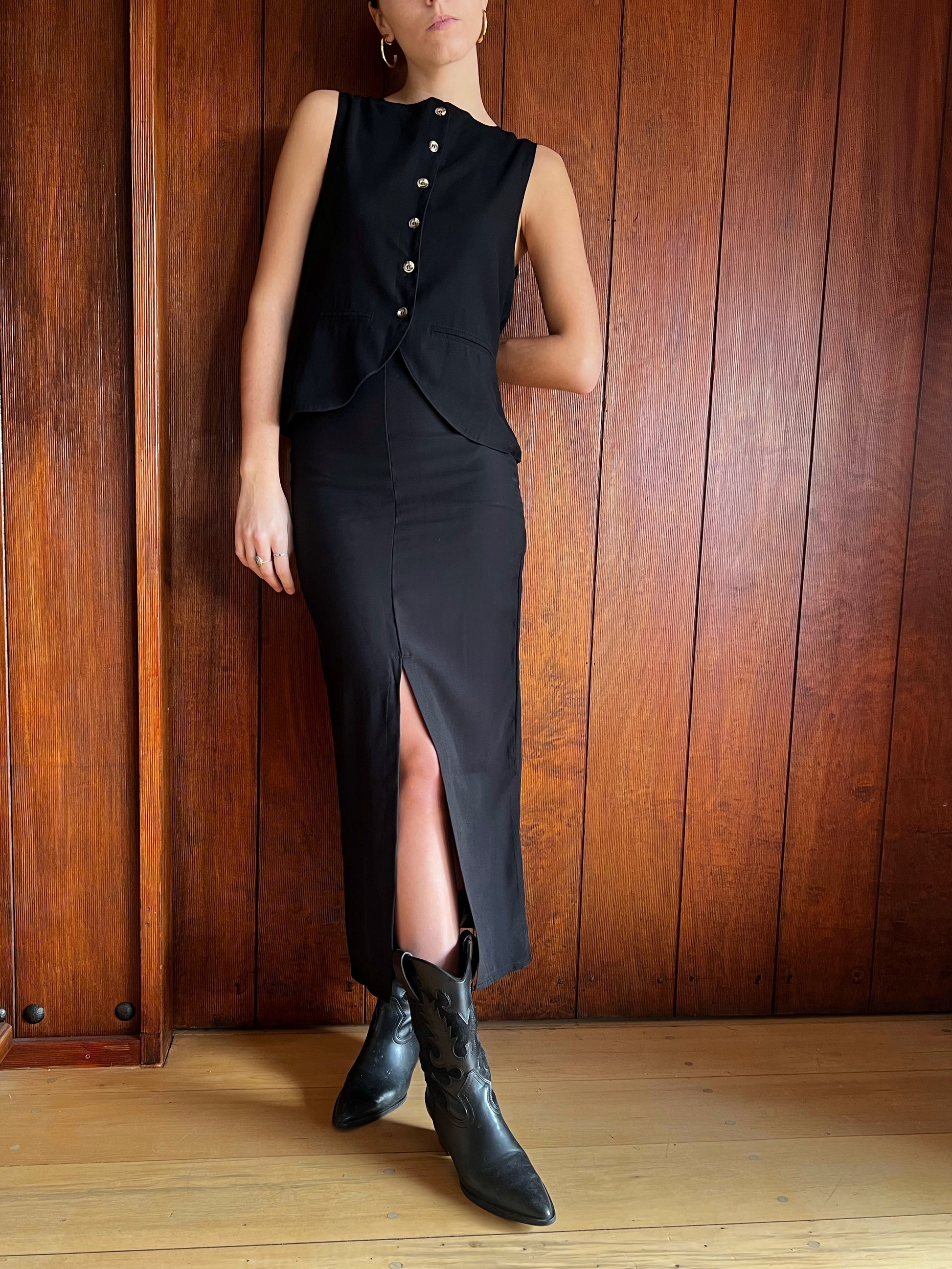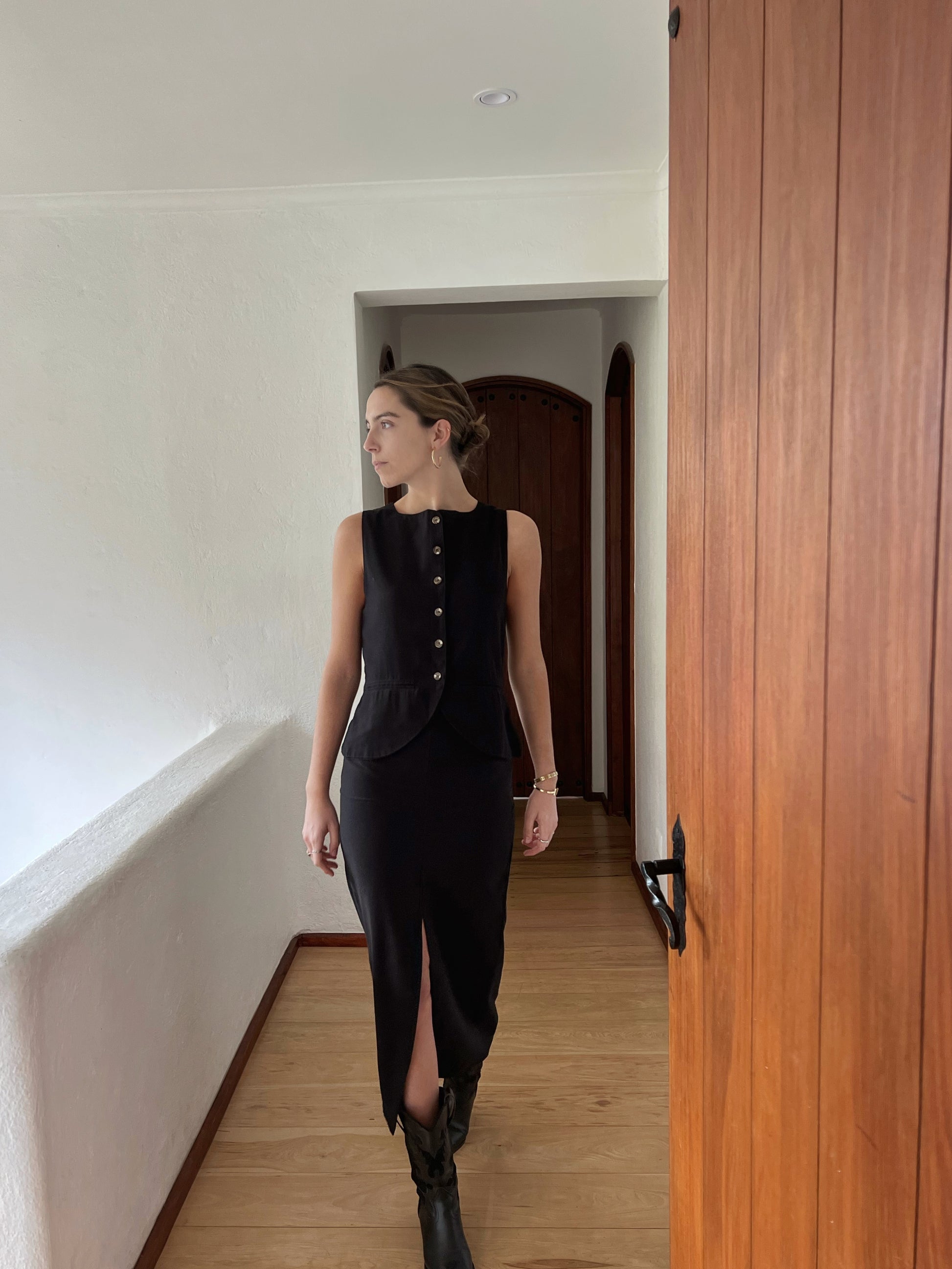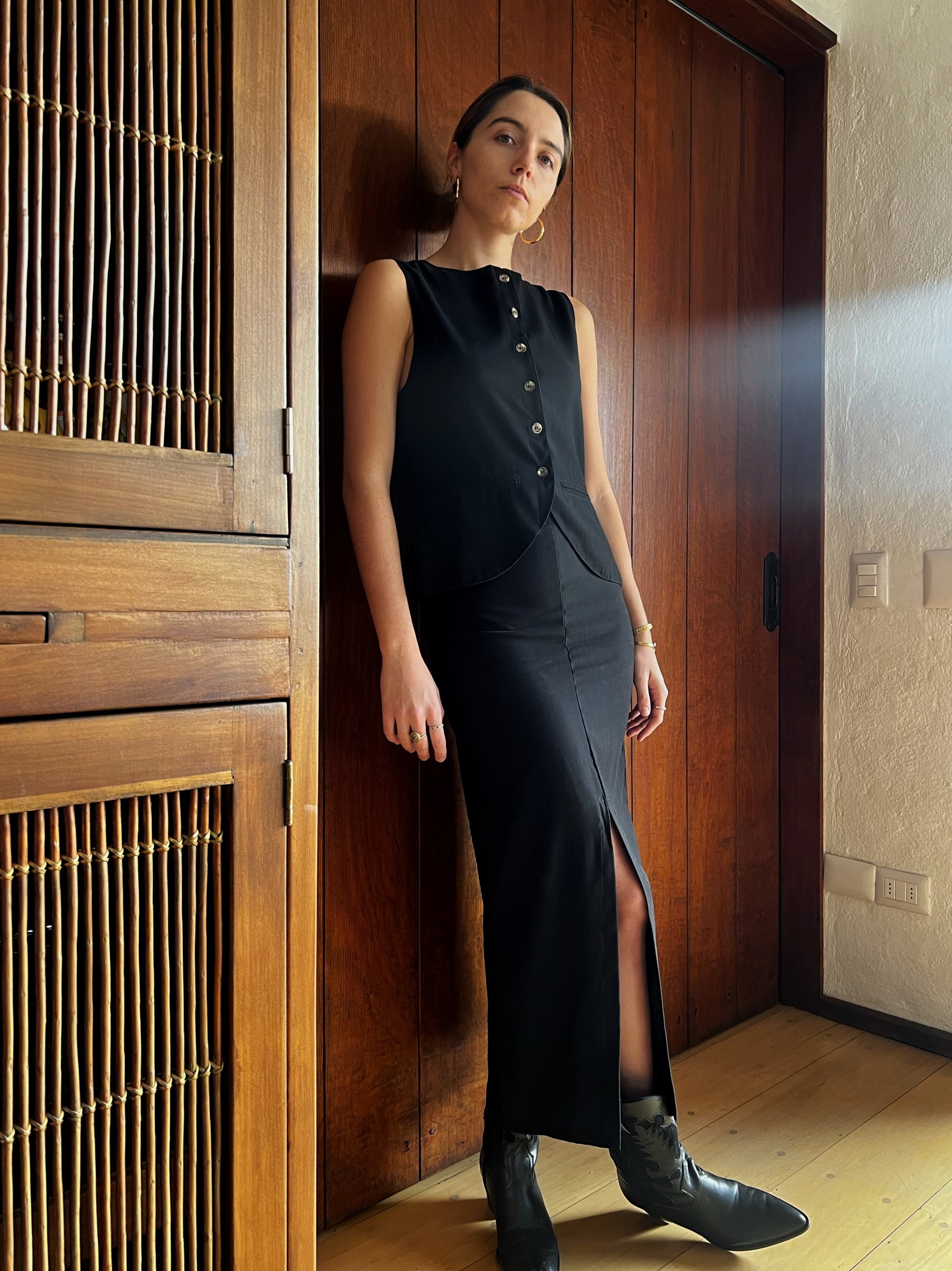 Pollera tubo midi con tajo frontal en tela 100% Cupro.