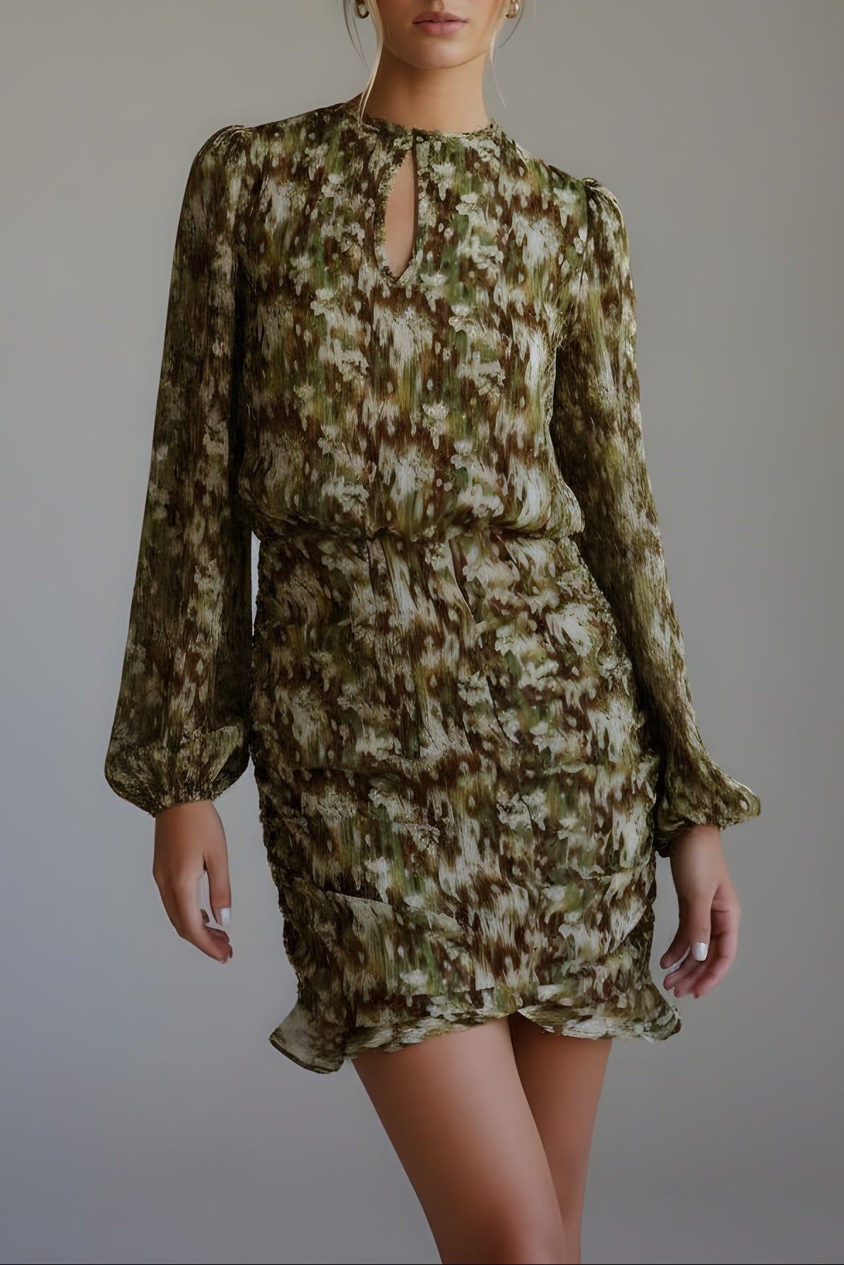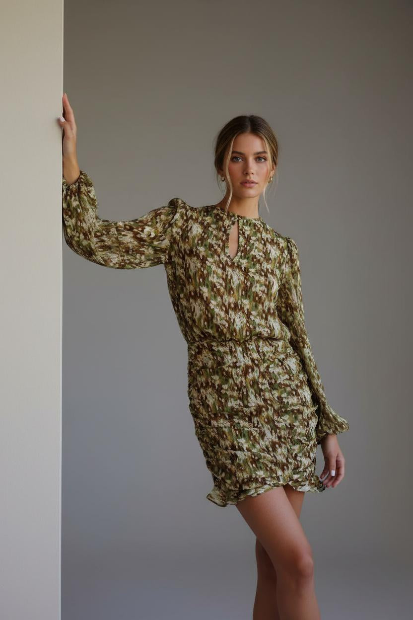 Pollera en gasa de viscosa recogido plisado, fuelle central, ruedo con vuelo y cierre invisible atrás.